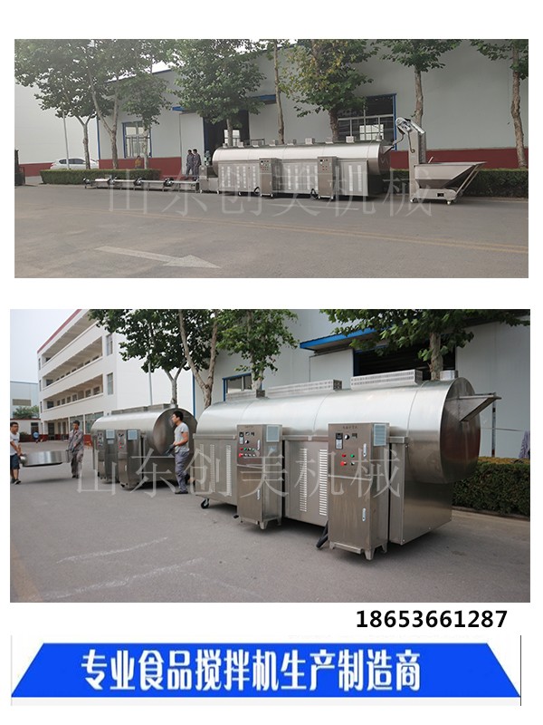 山東創(chuàng)美機械流水線設備可根據(jù)您需要炒制的物料選擇鍋流水線長度,山東創(chuàng)收美機械有現(xiàn)貨成熟流水線炒貨設備以及配套設備,包括提升機、冷卻床、振動過濾風選機等。詳情可咨詢客服18653661287,、保護熱量不能向外散放,熱效率可達95%以上,比傳統(tǒng)的電加熱烘炒設備節(jié)電45%以上。