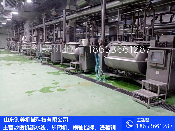 山東創(chuàng)美機(jī)械主要生產(chǎn)炒貨機(jī),炒貨機(jī)流水線,大型浸糖鍋,及橫軸攪拌炒鍋殺菌鍋等具體可咨詢客服