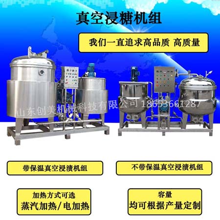 隨著科技的發(fā)展真空浸糖設(shè)備也離我們越來越近工廠里做的蜜餞設(shè)備跟地瓜干設(shè)備是怎樣做出來的呢,離不開我們的真空浸糖機(jī)下面小編就來介紹一下糖化鍋原理真空浸糖鍋以一定壓力的蒸汽為熱源也可選用電加熱;天然汽、液化汽)真空浸糖鍋具有受熱面積大、熱效率高、加熱均勻、液料沸騰時(shí)間短、加熱溫度容易控制等特點(diǎn)。2、真空浸糖鍋內(nèi)層鍋體(內(nèi)鍋)采用耐酸耐熱···