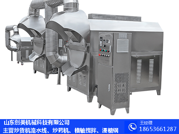 炒貨機(jī)多少錢一臺(tái)山東創(chuàng)美機(jī)械炒貨機(jī)主要分兩種加熱方式,一種是電磁加熱一種是燃?xì)饧訜徇@種炒貨機(jī)可根據(jù)客戶要求加工訂制,從20斤到1000斤的都有全部是304材質(zhì),電磁加熱控溫控時(shí)·堅(jiān)果加工業(yè):瓜子、花生、腰果、杏仁、板栗、核桃、榛子、開心果、印加果、夏威夷果·榨油業(yè):芝麻、花生米、油萊籽、大豆·飲品:咖啡豆、苦養(yǎng)、麥片、大麥芽·制茶業(yè)···