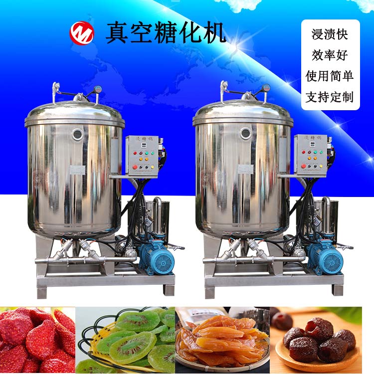 真空浸糖鍋介紹真空浸糖機(jī)組結(jié)構(gòu)組成:真空浸糖機(jī)組結(jié)構(gòu)部件主要包括真空滲透罐主罐、料液循環(huán)泵、真空泵、電控系統(tǒng)、管路系統(tǒng)。我公司可根據(jù)用戶的使用環(huán)境的不同,設(shè)計(jì)制作為蒸汽加熱形式(適用于有蒸汽熱源的用戶)??筛鶕?jù)用戶特殊要求加配自動(dòng)化控制元素。用戶可以單獨(dú)選購滲透罐主罐,也可選購設(shè)備成套機(jī)組。真空浸糖機(jī)組規(guī)格:真空滲透罐有100L至2000L不同容積,較小規(guī)格···